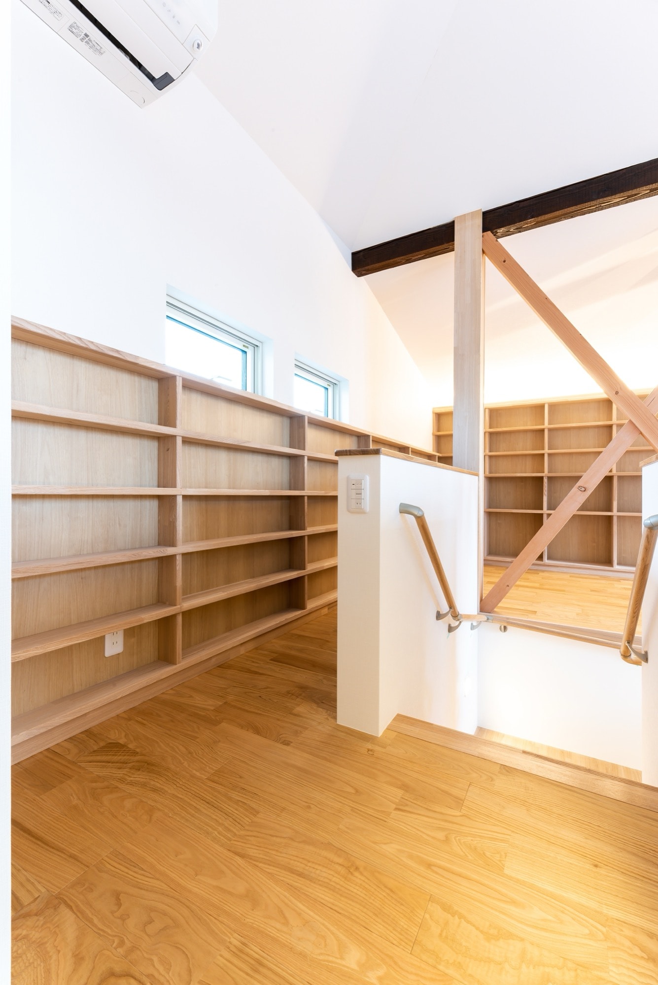 こちらの事例では、階段ホール〜廊下に本棚を設置しました!
