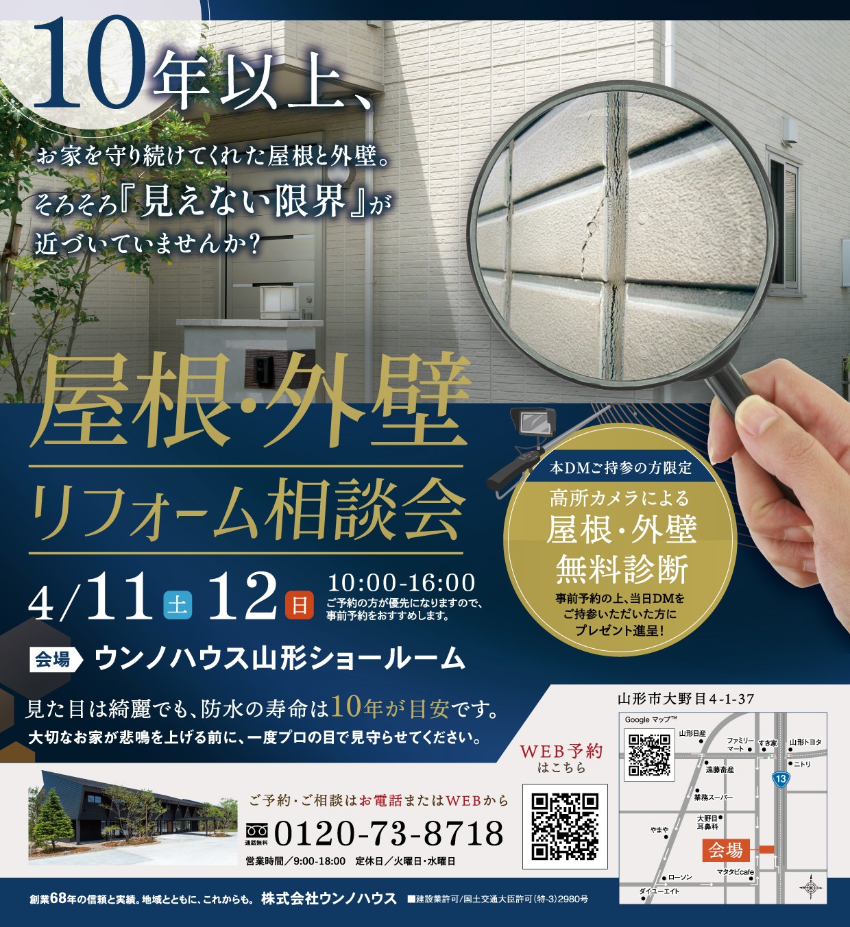 日頃よりウンノハウスをご愛顧いただき、誠にありがとうございます 。 大切なお住まいを建ててから、あるいは前回の塗装から「10年」という月日が流れていませんか? 見た目は綺麗に見えても、実は屋根や外壁の「防水寿命」は10年 … 続きを読む 【築10年以上のOB様限定】「お家の健康診断」屋根・外壁塗装リフォーム相談会を開催します!