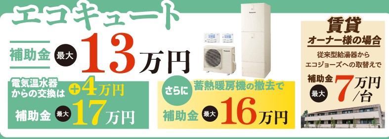 対象機種により6万円~13万円までの補助金が受けられ、さらに電気温水器と蓄熱暖房機の撤去に対する加算(予算上限に達したため終了)もあり、2024年も大変注目度の高かった制度です。
