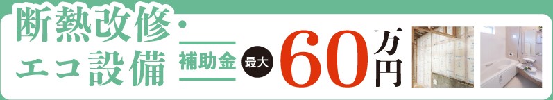 断熱窓への改修、躯体の断熱改修、エコ住宅設備の設置などを対象とし、最大60万円の補助金が受けられます。