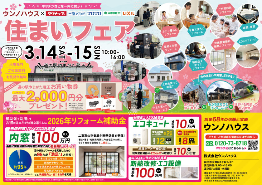 「今のお住まいがなんとなくしっくりこないな」「暮らし方を少し変えてみたい」そんな気持ちになったら、福島市吉倉にあるウンノハウス福島ショールームへお出かけください。